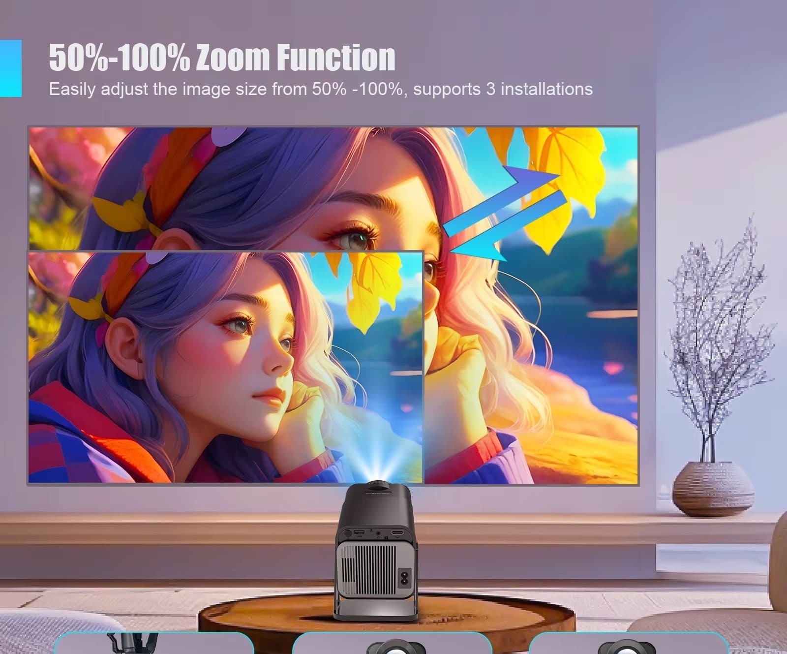 Easily adjust the image size from 50% -100%, supports 3 installations