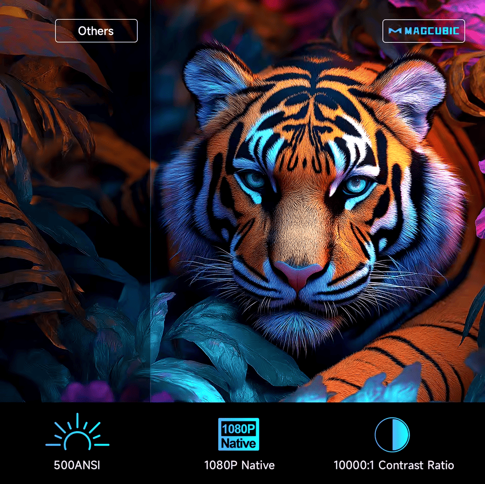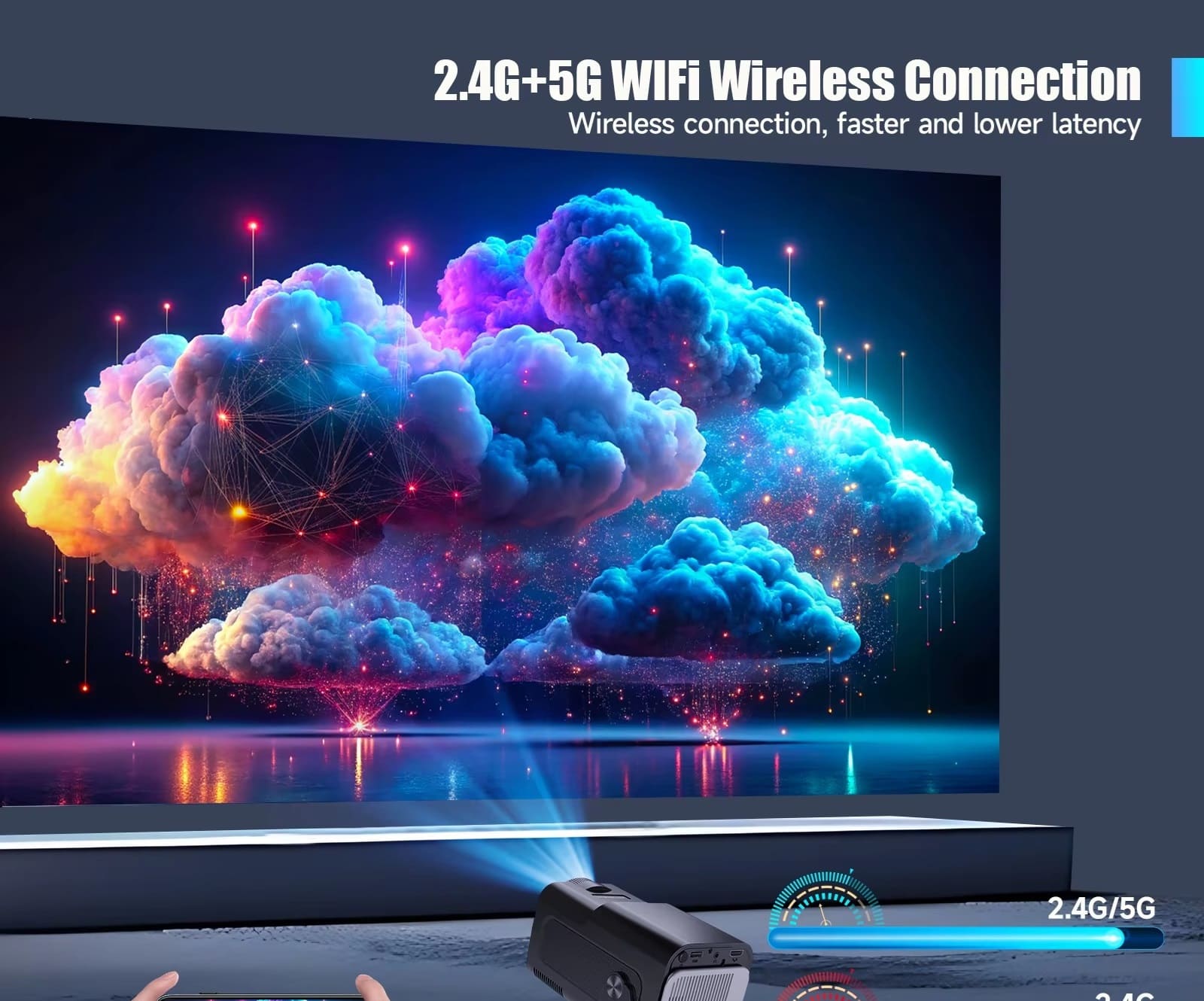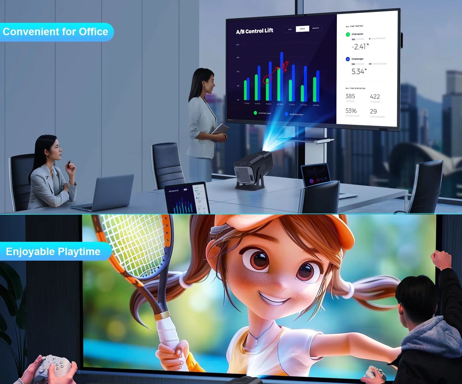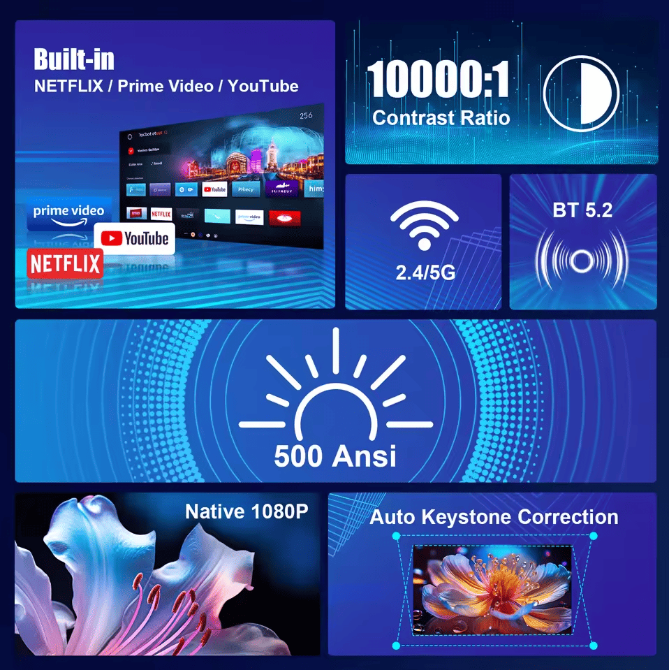 500ANSI, BT Air Voice Remote, Android 13 4K native 1920*1080P Dual Wifi6 BT5.2, Supports 4K video